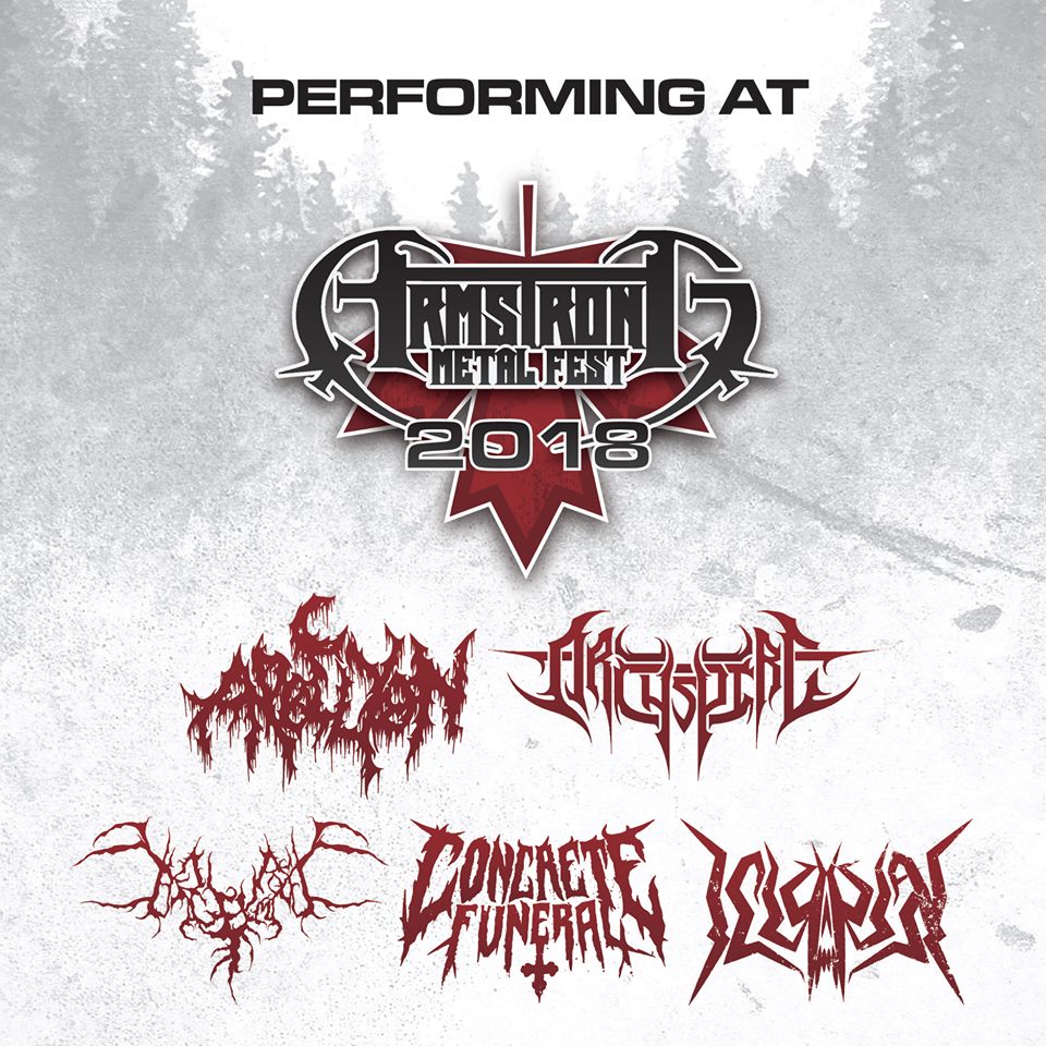 0 #10YearsArmstrong The next batch of bands for the Armstrong MetalFest 2018 Line Up \m/\m/ Archspire, Apollyon, Concrete Funeral, Illyrian, Begrime Exemious Get Your 2018 Tickets Now! https://armstrongmetalfest.ca/tickets/ All tickets provide General Admission and grant access to the festival grounds, camping area and arena from 11:00 AM on Friday, July 13, 2018 until 11:59 PM on Sunday, July 14, 2018. Free camping is included. If you would like to volunteer for this year’s fest, please go to the volunteers section at http://www.armstrongmetalfest.ca