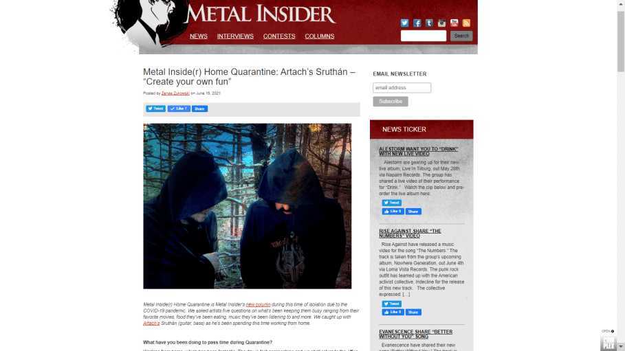 Artach’s process is a collaborative one between the duo, the genesis of the songs are arranged on guitar by Sruthán and very roughly recorded at home. After getting together, they record drums and flesh out the song in an afternoon and by then the song is pretty much ready for the studio recording of guitars, then bass, and lastly vocals.