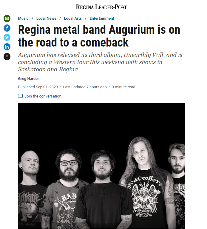 Unleashing their third studio release “Unearthly Will” in 2023 and 2024 single / video ”Morningstar”, Regina, Canada’s symphonic death metal outfit Augurium returns with their first taste of new music in 2025 for fans in the lead up to their opening support for progressive death masters and hometown heroes Into Eternity on May 17th. (details below).