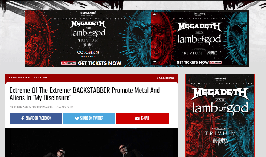 “Out of northern Quebec comes the Men In Black, melodic death metal band Backstabber. Last year, these guys dropped their debut album Conspiracy Theorist and it still stands as one of the best albums of the year. Full of tinges of Hypocrisy from style and sound, to the obvious connection of alien themed lyrics. A little over a year later now, Backstabber are dropping a music video for their song “My Disclosure” and it’s essentially nothing you would expect from a small independent band only on their first album.” – Metal Injection