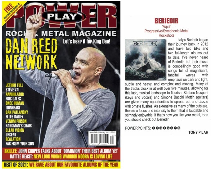 “Not only will Beriedir pull your face off, but they’ll do it at breakneck speed in 5/4 time. ‘Aqva’ is a fast-paced album, thrashing machine gun powered guitars do endless battle with the fanfare of keyboards which blast with all the fun of those Euro-pop power metal sound.” – The Metal Crypt