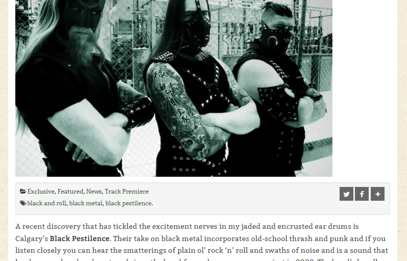 0 Heavy Music Headquarters – Black Pestilence – Hail The Flesh “Calgary, Canada’s Black Pestilence bring a fresh take to the sound, though. Hail The Flesh, the band’s sixth full-length album is a blackened crossover punk-thrash album. It sounds old school, yet very 2000s at the same time…. Municipal Waste, Impaled Nazarene, Toxic Holocaust fans take notice.”