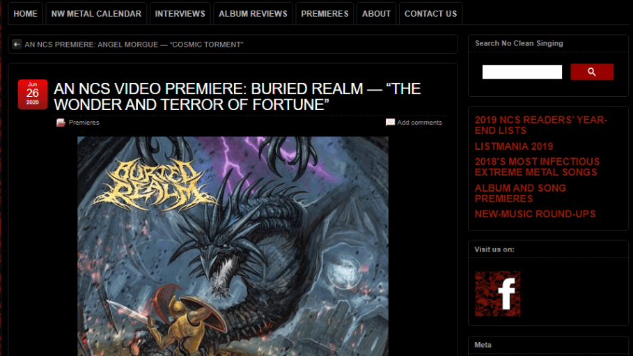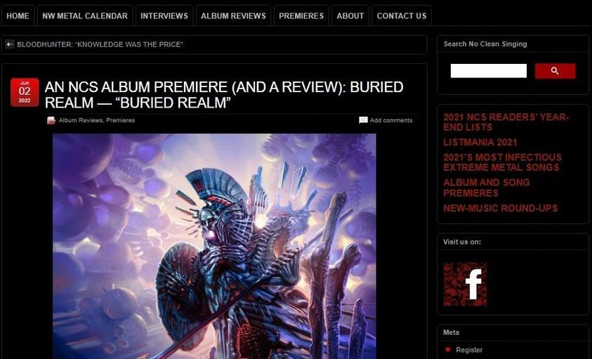 “Buried Realm play an eager, galloping sort of melodeath, with lots of speedy leads, upbeat riffs, synthesizers, and solos everywhere. It’s almost as if Blind Guardian enthusiasm and subject matter met up with Scar Symmetry’s love of ambience and melodic-yet-death-y riffs… I commend Buried Realm for their songwriting, performances, and ambition.” – Angry Metal Guy