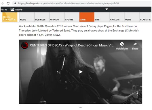 0 Regina Leader Post – KNOW SHOWS: What’s on in Regina, July 4-10 CENTURIES OF DECAY \m/\m/
