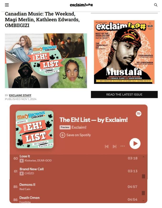 0 Thank You Canadian MDs and DJs for the airplay love! \m/\m/ For the Week Ending: Tuesday, December 17, 2024