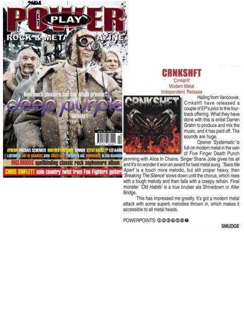 “CRNKSHFT’s forthcoming release sells me on the group’s ultimate potential. I look forward to hearing what else this Canadian band can do. ” – Heavy Metal Time Machine