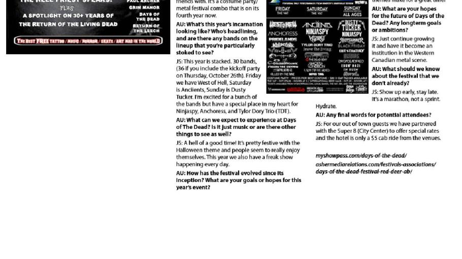 Now in its 4th year, Days of The Dead has grown to a three day event hosting over 30 bands from across Canada for both all ages and 18+ shows for a reunion of friends, music fans and a Halloween aficionados.