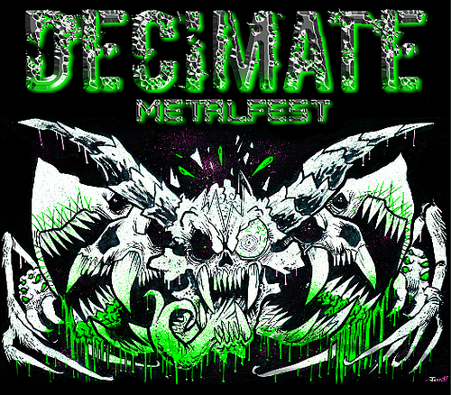 Decimate MetalFest is the brainchild of Sloan Voxx of Voxx Promotions, which is destined to become an annual Canadian metal pilgrimage to Calgary, Alberta, Canada. With the many yearly festivals becoming part of the national metal heritage, Sloan wants Decimate MetalFest to become one of the best-known events alongside the various festivals located within Alberta, and Western Canada. With Voxx Promos booking and promotional experience, and the support of metalheads internationally, there is nothing to stop them from reaching their goal of bringing in the masses and putting on incredible metal festivals for years to come!” (writing credit – Ingrid Newton)
