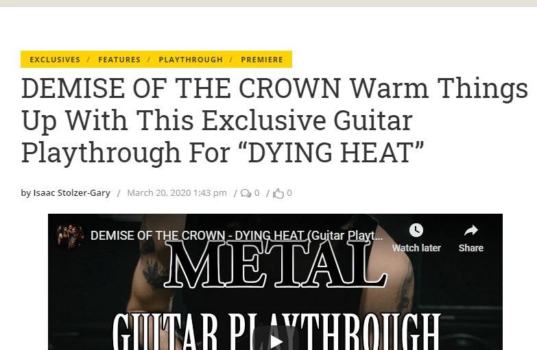 “The track kicks into high gear right away with some intense riffing before quickly transitioning into a more melodic and calming verse which has a nice contrast to the heaviness of the rest of the song. Fast and heavy, yet harmonic and well-composed, “Dying Heat” is sure to get the crowd simultaneously moshing and singing along.” – GearGods