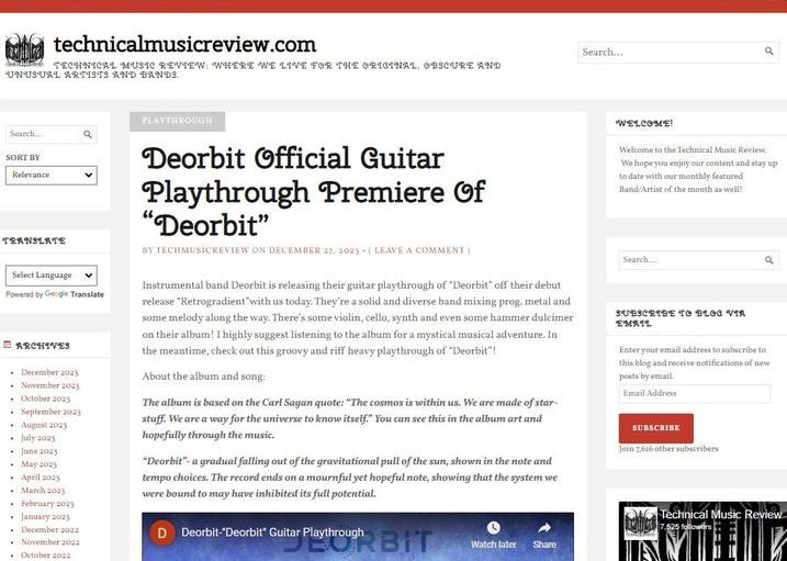 0 Streaming Now! DEORBIT’s Debut Album “Retrogradient” Offers A Complex, Instrumental Look At Space And Progressive Metal