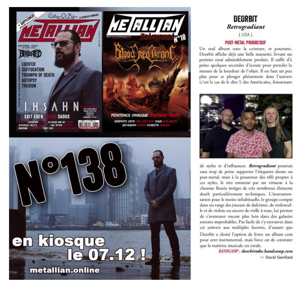 Unveiling their debut album “Retrogradient” this past November, Milwaukee, USA’s Deorbit (ft. members Northless, Ara) offers up depictions of surreal aspects from the mind of guitarist Jerry Hauppa with each track merging cold aspects of the expanding universe with the organic familiarity of human understanding.