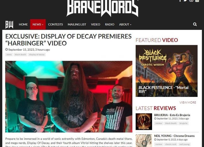 Prepare to be immersed in a world of sonic extremity with Edmonton, Canada’s death metal titans, and mega nerds, Display Of Decay, and their fourth album “Vitriol” hitting the shelves later this year. They have released a single “The Butcher” already and now the second “Harbinger” will continue to engulf listeners in thunderous drums, ferocious guitars, guttural vocals, and gory and nerdy lyrics. The band shares what’s in store: