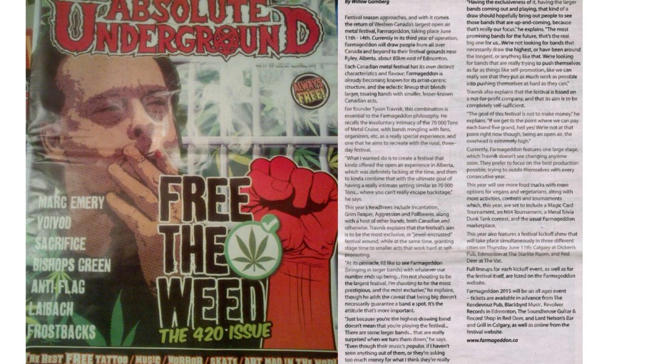 0 Absolute Underground Mag April-May 2015 – Farmageddon Open Air Preview! Pick Up Your Copy Now!