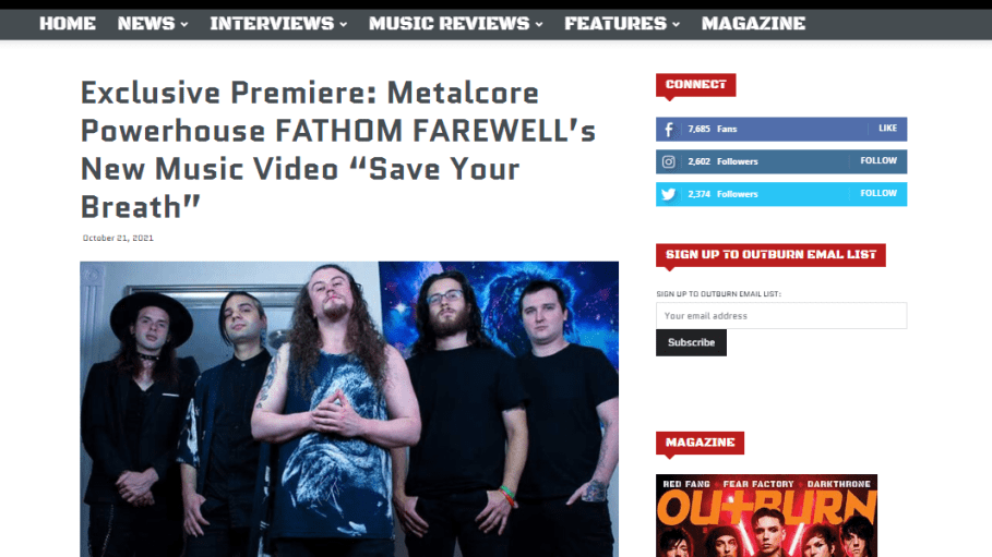 0 Music Video Premiere via Outburn: “Save Your Breath” Is The Heartfelt New Video From Fathom Farewell Off New EP “Kraken” Out Oct 22 via Blood Blast Distribution