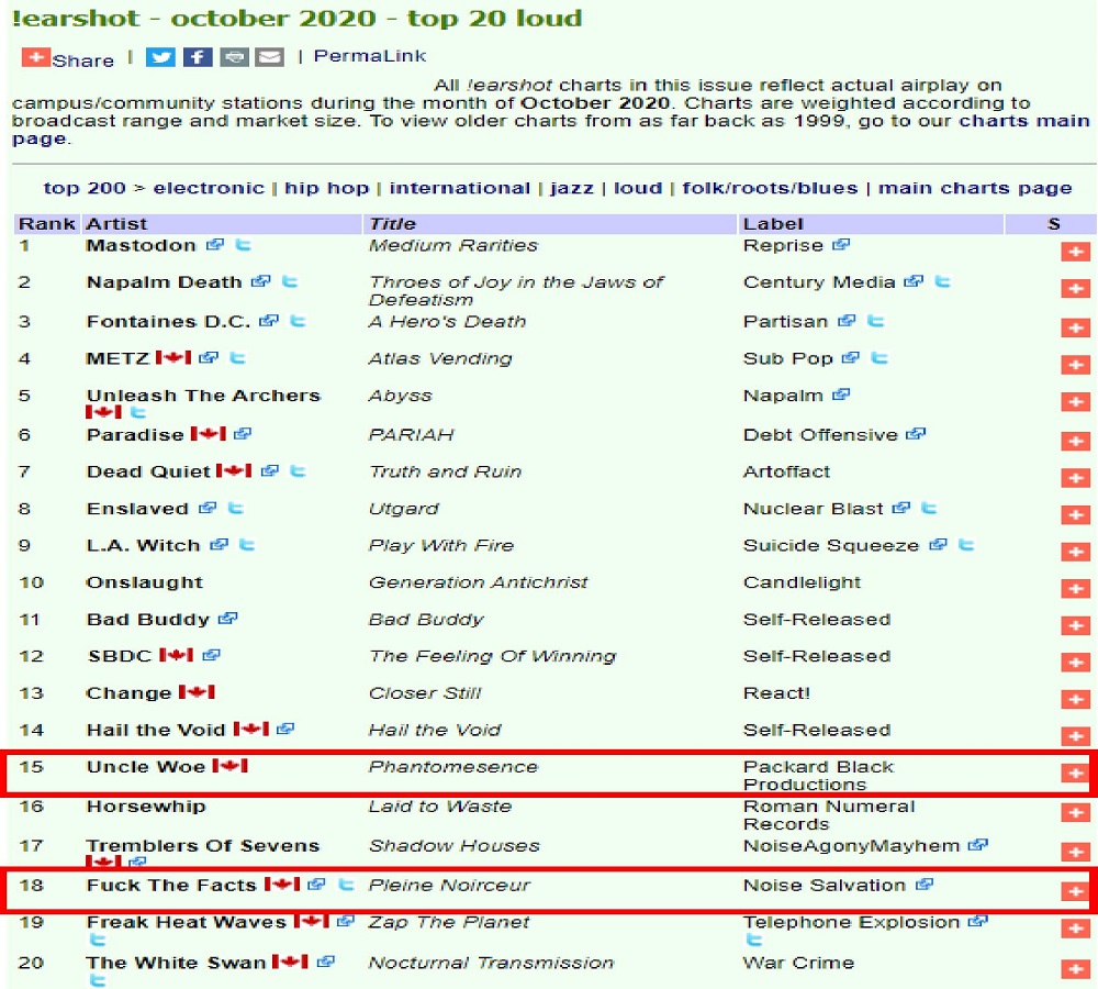 0 Hails Horns \m/\m/ Thank You Canadian MDs and DJs #15 Uncle Woe, #18 Fuck The Facts !earshot – October 2020 – top 20 loud