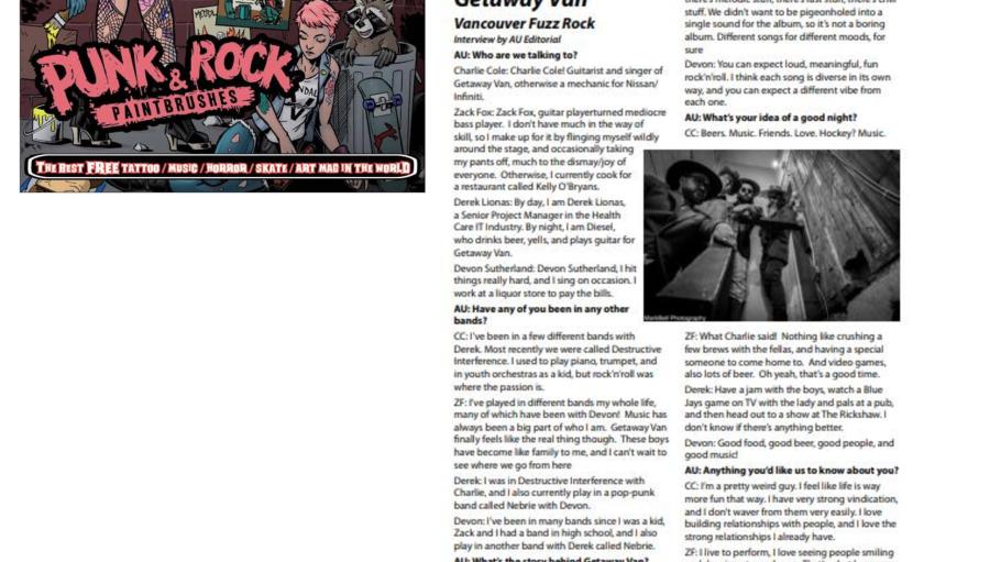 New to the Vancouver rock scene, GETAWAY VAN has been maneuvering through venues to bring their slightly out of control punky blues stoner fuzz rock to entertained audiences for the past year. Collectively, the band shares a broad taste in music and using that to their advantage it’s translated into a record full of different styles and influences that they recently released on February 23rd of this year.