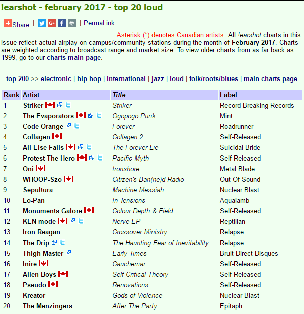 0 Thank you DJs and Directors! Much headbanging love to you all! #1 Striker, #5 All Else Fails, #16 INIRE !earshot – February 2017 – Top 20 loud