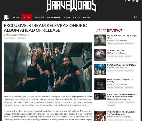 Formed in 2009 in Regina, Canada, Kelevra continues to supply a serious dose of progressive metal to the masses. With a loyal local fan base cheering them on, they are taking the metal scene by storm with their third album “Oneiric”, set for release on March 8, 2024. Taking us through some of Kelevra’s best work to date, it is thoroughly aggressive yet at times epic and heartfelt. The band comments: