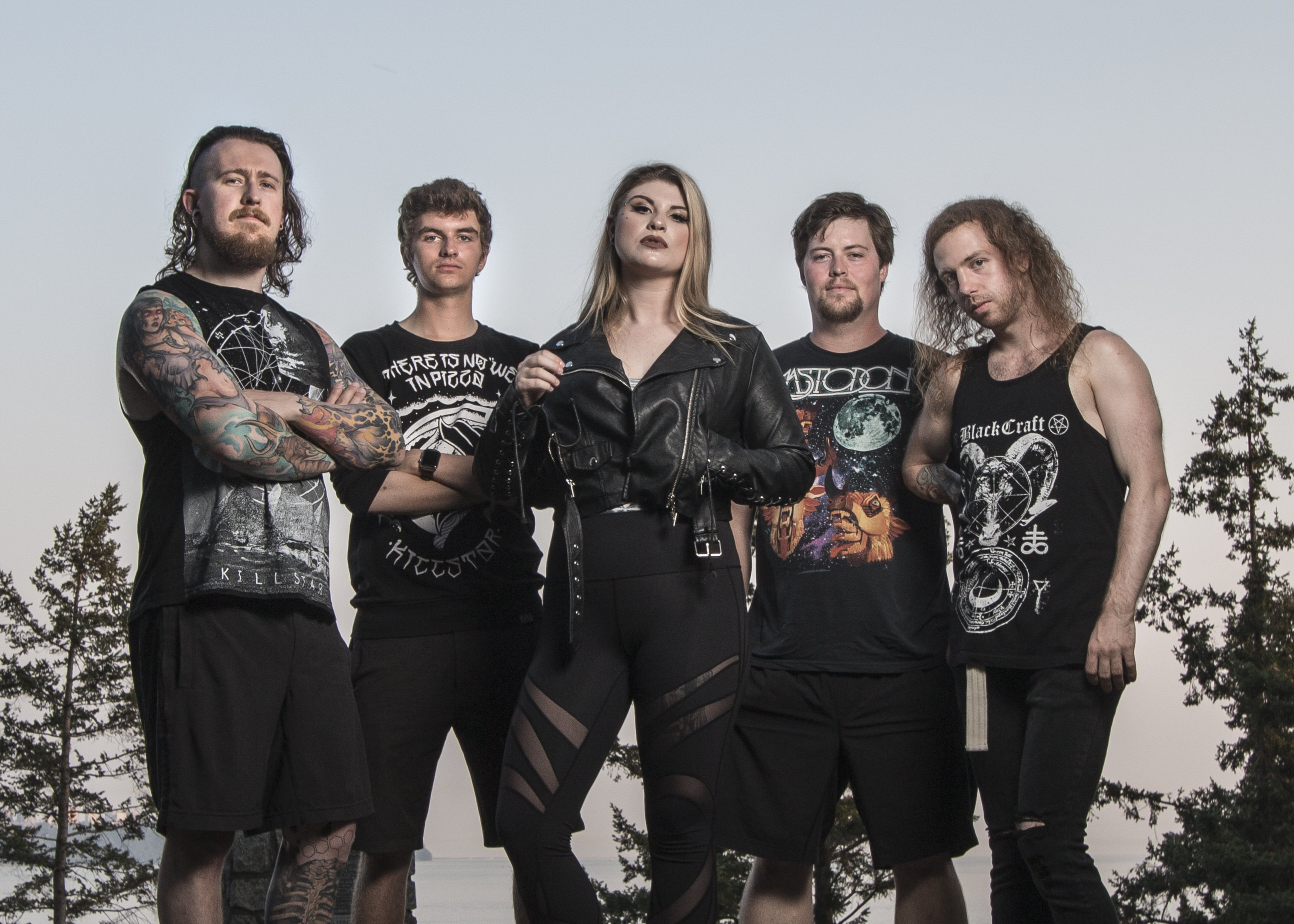 L-R: KOSM line-up | Erik Leonhard (Guitar) | Michael Mastracci (Bass) | Jessie Grace (Vocals) | Mike Slater (Guitar) | Sterling Paterson (Drums) | Photo credit – Justin Forster