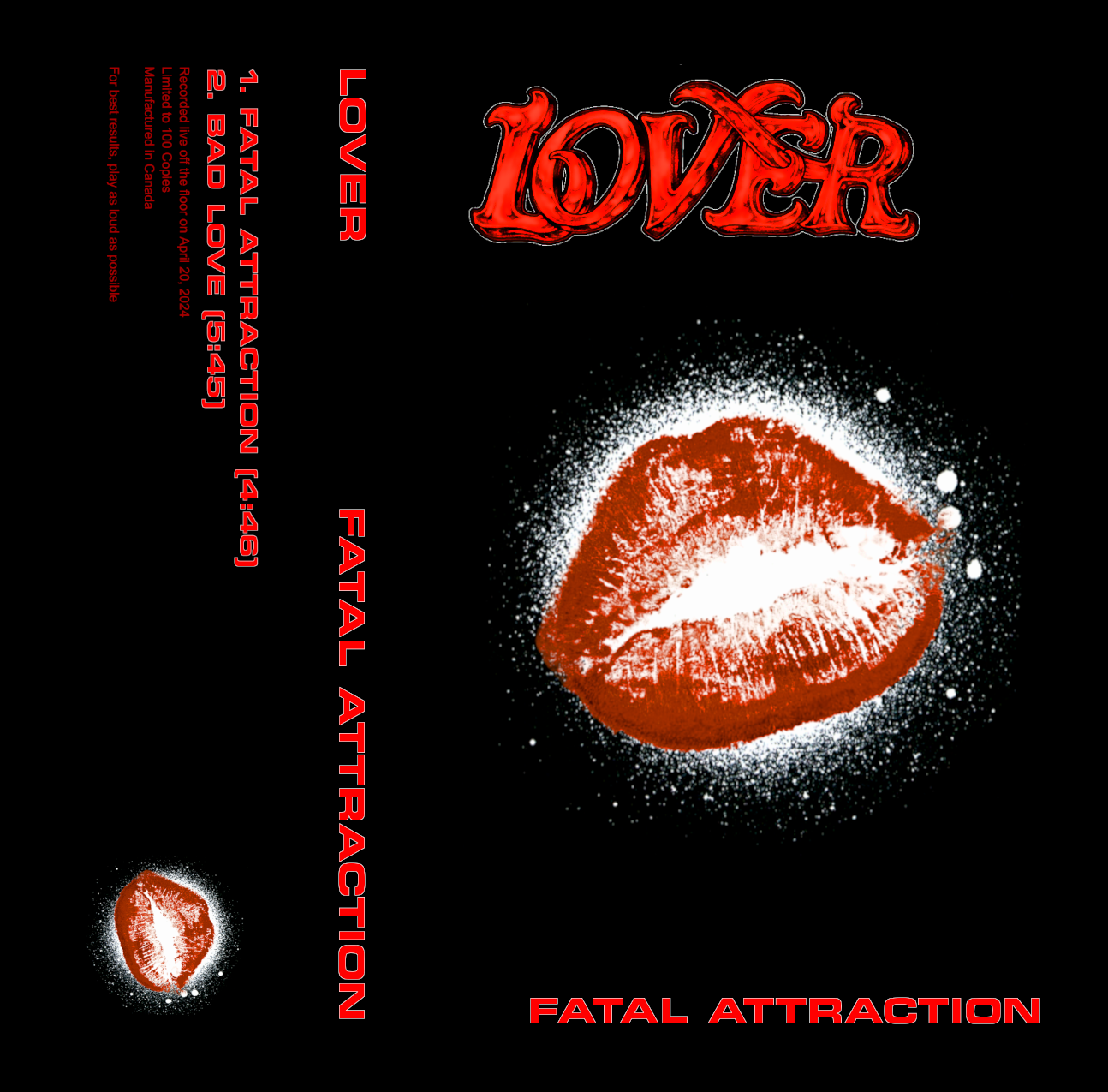 Now available as of June 20th, Calgary’s high-intensity, no filler rockers LOVER, release their limited edition cassette for their latest EP “Fatal Attraction”. Fans can now rock out with a physical anthem in hand. Heavy metal fans can experience what “Fatal Attraction” truly is: a fast, real, kick to the face. Even though the EP is only two tracks, this is a sampler of what’s to come. The opening title track is an energetic rush of sound that captures the ups and downs of being overwhelmed by desire. The lyrics feed this feeling by talking about lust and substance abuse. Track 2. “Bad Love” lyrically is a tough and mean reality check. It’s based on a true story of love gone wrong. It has aggressive riffs, mean solos, and is captures the strain of a mind in love and turmoil.