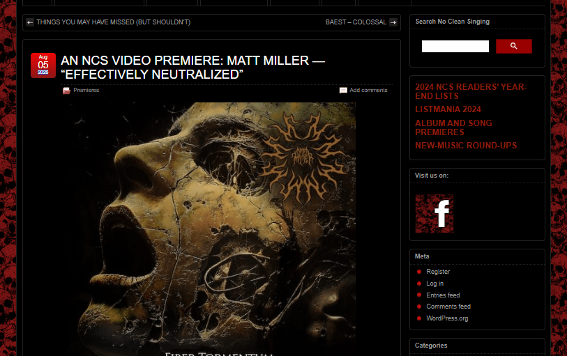 “Hell yeah. Holy moly canoli. Fiverr to Fiber Momentum, and that was the album. This song is Descent into Violence. Holy moly canoli, dude. Go support, Matt Miller. That was absolutely badass. Total shredding. Jordan, also a homie of mine, your drums are incredible. The new singer, Bo, I love the harsh vocals in the clean. Total is it almost the cleans almost reminded me of Queensryche meets Cannibal Corpse. It’s pretty freaking sweet. And of course, Justice always lays down the heavy bass with the beautiful bass faces. But an absolutely incredible album….Matt Miller, you could find him everywhere. He’s an incredible guitar player, one of the best guitar players of our generation. Remember, this is Fiber Tormentum courtesy of Exitus Stratagem Records. So, a huge shout-out to them as well. Matt Miller has so many more songs. If you guys like this song (Descent into Violence), believe me, this guy is an absolute shred master. Not only does he do like a ton of his own originals, he does a ton of covers, and also he’s just a shred master of all sorts. Just exactly how they say, melodic, technical, and death. But I will definitely say the big thing that stands apart about this whole song is great structure, absolutely shredding on all levels, and the vocals are just 100% one-of-a-kind. And I totally enjoyed it. Guys, I love you guys from the bottom of my heart. This has been Matt Miller with his new song, Descent into Violence. Pick up the new album on September 12, Fiber Tormentum.” – Omar Rodriguez – The Metal Mixtape – YouTube Channel