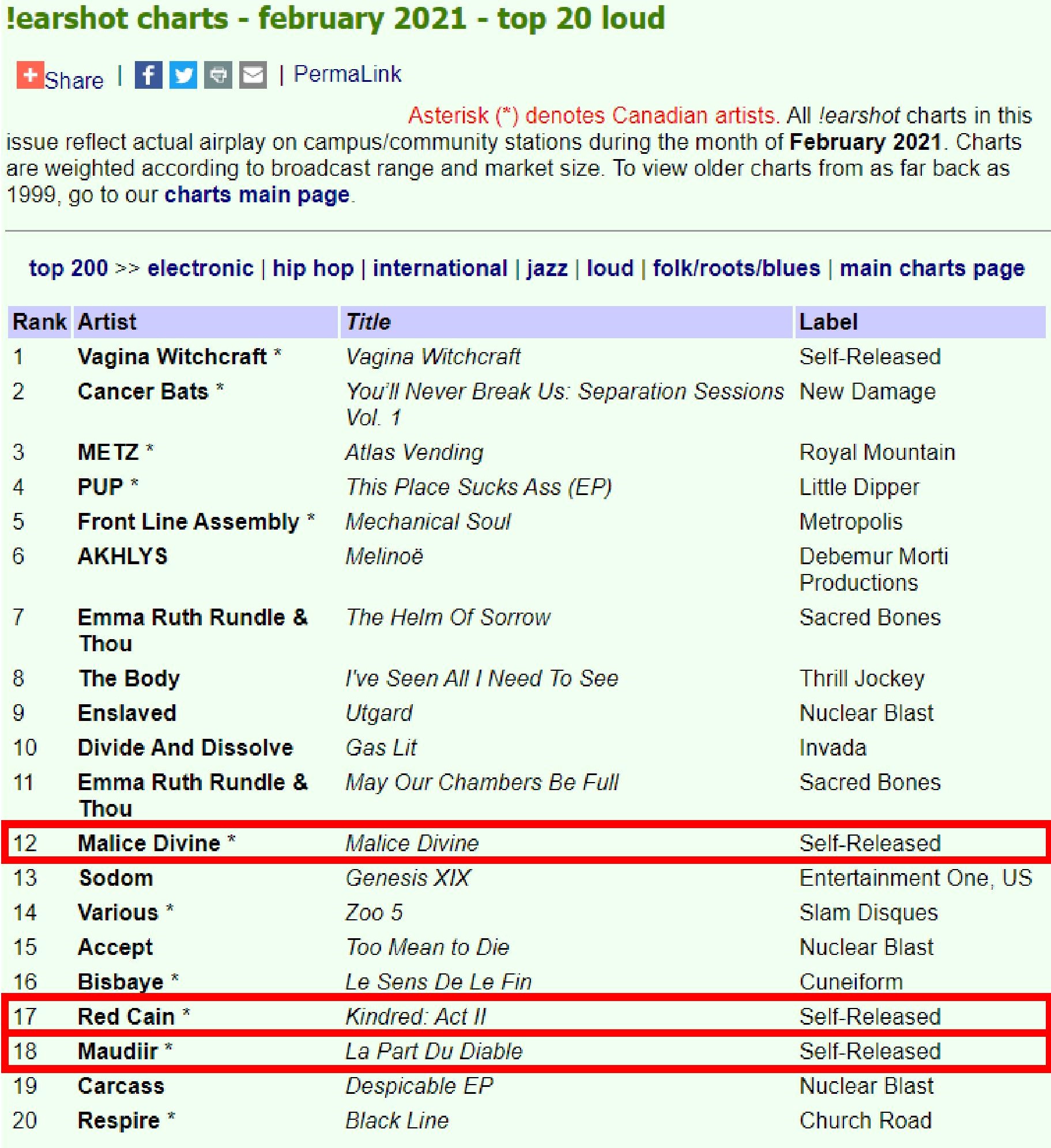 (Rockshots Records, Extreme Metal Music, Armstrong MF, Loud As Hell, Metalocalypstick, Decimate MF, Electric Highway Fest, Wacken Metal Battle Canada/USA, Hyperspace MF, ToledoDeathFest)