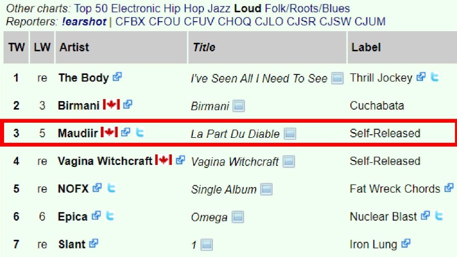 “Maudiir are a blackened thrash metal band from Montreal, Québec. They’re putting out a new album on April 7 called Soliloque, and the first single, “L’Éloge du Cuivre,” is available on their Bandcamp right now. Break out your French knowledge for this one. It’s a pummeling metal track but one not without its share of punk influence an the chords pound in a fiery fury. That guitar definitely has one foot in punk and one in metal, while the drummer keeps up a fairly simple nu metal beat. It’s got a great edge to it without just getting lost in how hard and heavy it is.” – New Noise Magazine