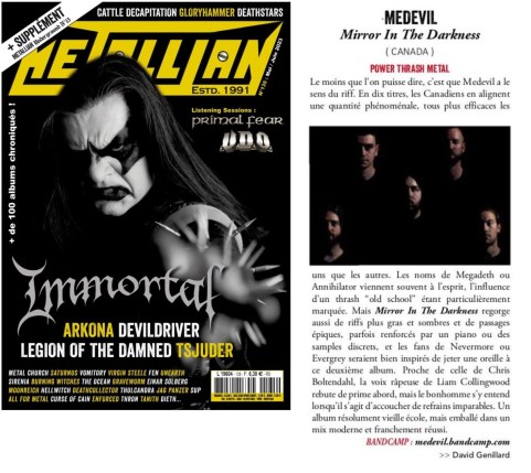 “”Medevil signs here a varied record. ‘Mirror In The Darkness’ starts from a thrash base to open up to progressive influences, and the result is very convincing.” ” – Music Waves