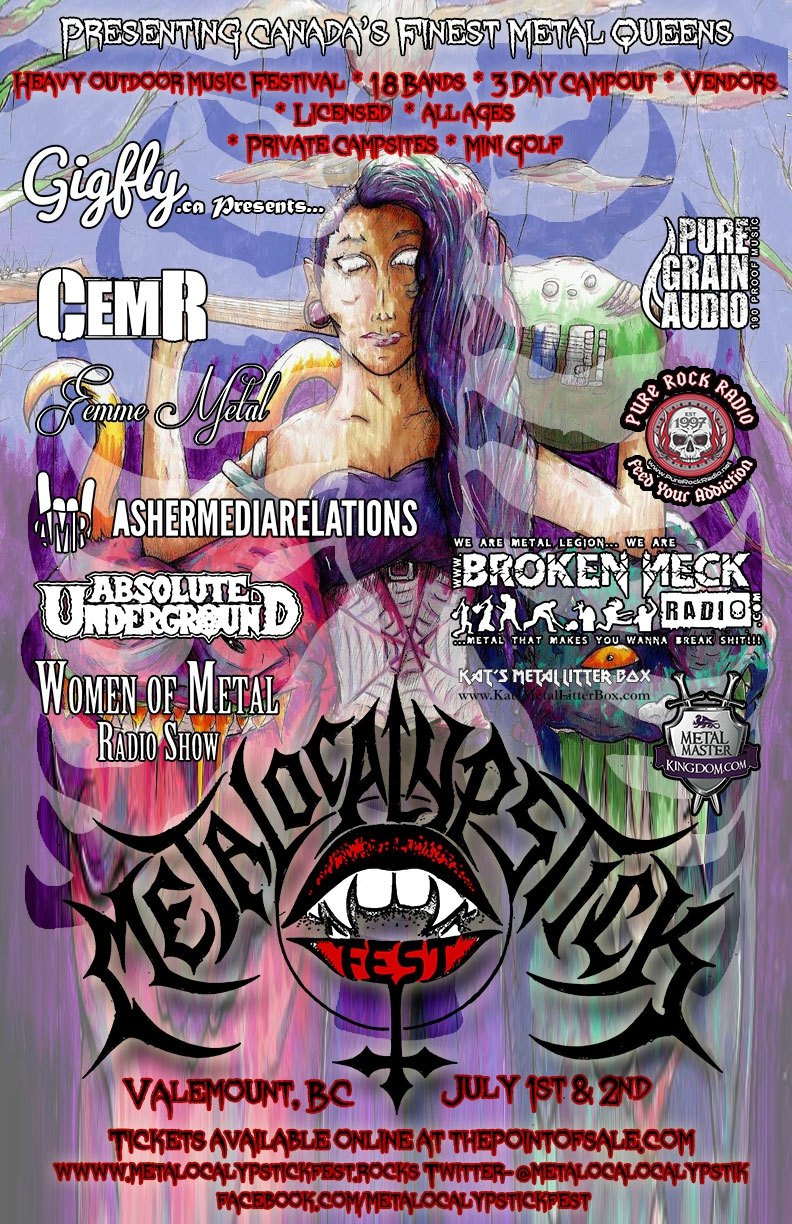 Formed in 2016, METALOCALYPSTICK FEST was created to present a unique experience within the Western Canadian metal community, a gathering of similar views, aspirations and musical taste. (similar to former mainstream music festival Lilith Fair.)