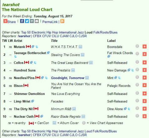 0 Thank you Canada! Huge Hails Horns \m/\m/ to Music Directors and DJs Thanks for supporting Canadian Thrash #1 MUTANK – !earshot – The National Loud Chart For the Week Ending: Tuesday, August 15, 2017