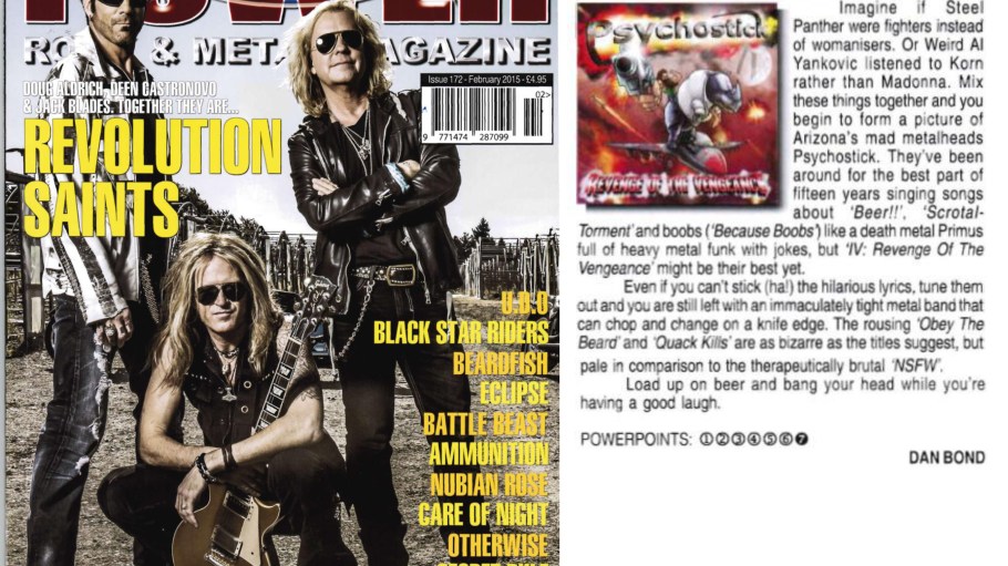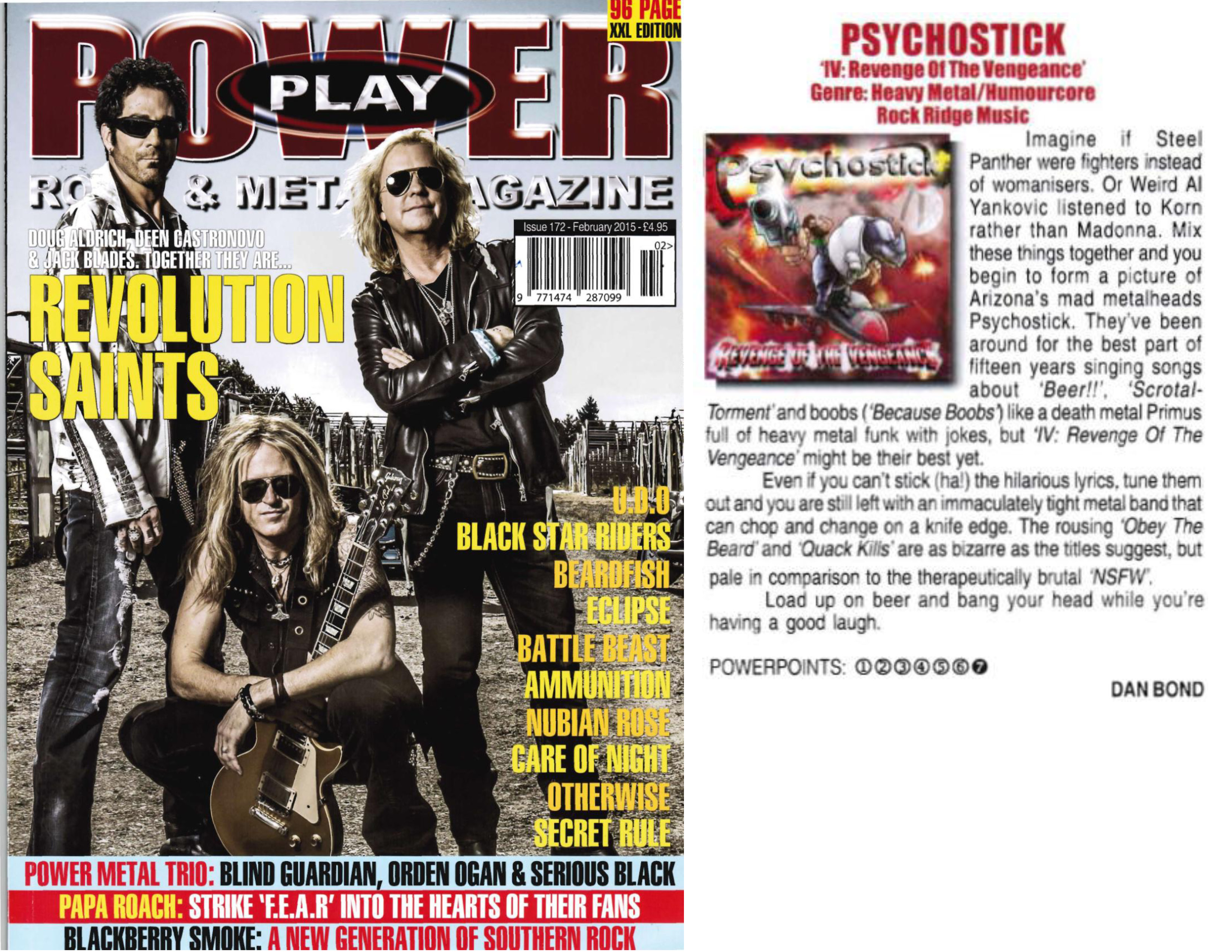 “In a genre with a lot of anger, aggression and seriousness, every once in a while some levity is good. That’s wherePsychostick come in. Their fourth albumIV: Revenge Of The Vengeance is musically solid and lyrically amusing.” – Heavy Metal – About.com