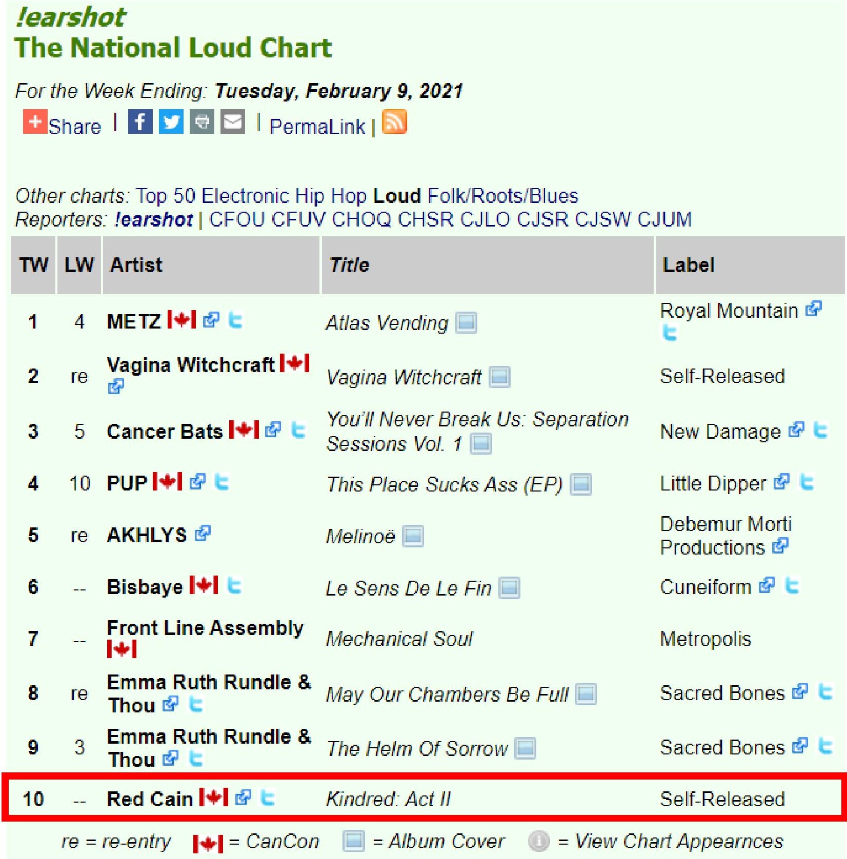 #10 Red Cain !earshot – The National Loud Chart For the Week Ending: Tuesday, February 9, 2021 (Earshot)