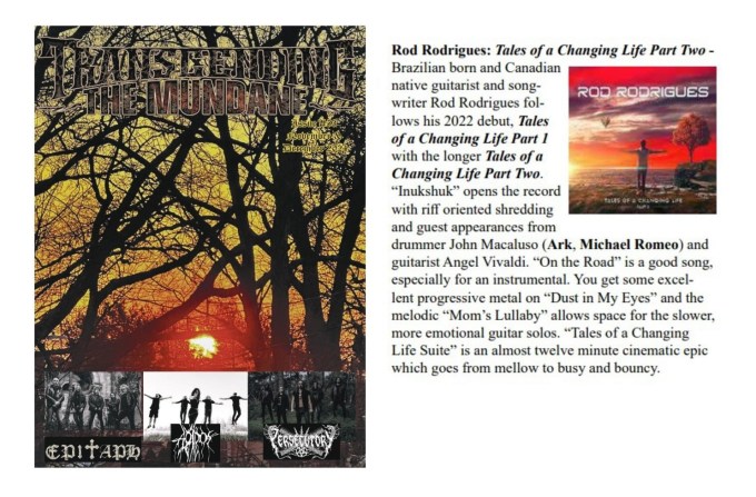 “Guitar virtuoso Rod Rodrigues latest release ‘Tales of a Changing Life is a conceptual record celebrating the changes in Rod’s life that have taken place over recent years. Straight from the Satriani-Vai-Johnson line of melodic guitar shredders, Rodrigues infuses his guitar playing style with prog, metal, fusion and jazz. While only a 5 song EP, there is a lot of great guitar work in this collection with an abundance of melodies. Perhaps not as much of a household name, Rodrigues is definitely worth getting to know.” – The Prog Report (2022)