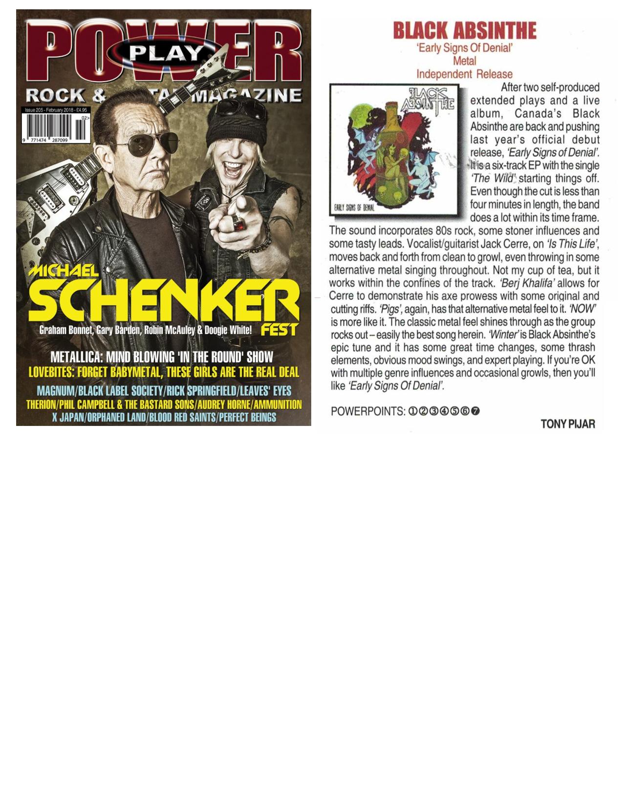 0 Thanks for the support Powerplay Rock and Metal Magazine #Reviews #metal Get your issue at http://powerplaymagazine.co.uk/issue-205/ Rockshots Records = Enzo Donnarumma, Dark Avenger, Sonic Prophecy Collective Wave Records = Arisen From Nothing Black Absinthe, The Reed Effect