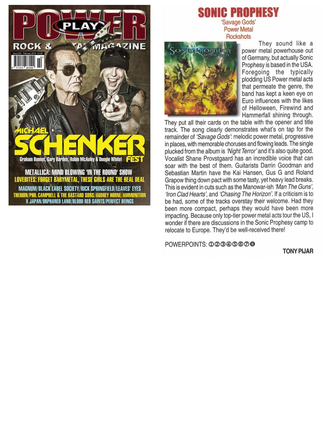 0 Metal Utopia – Sonic Prophecy – Savage Gods “This album fits within almost any playlist, I know for sure that I’m adding it onto my classics playlist. Sonic Prophecy are not imitators, they take the sounds of their inspirations and our metal monoliths of yesteryear and build upon it.”