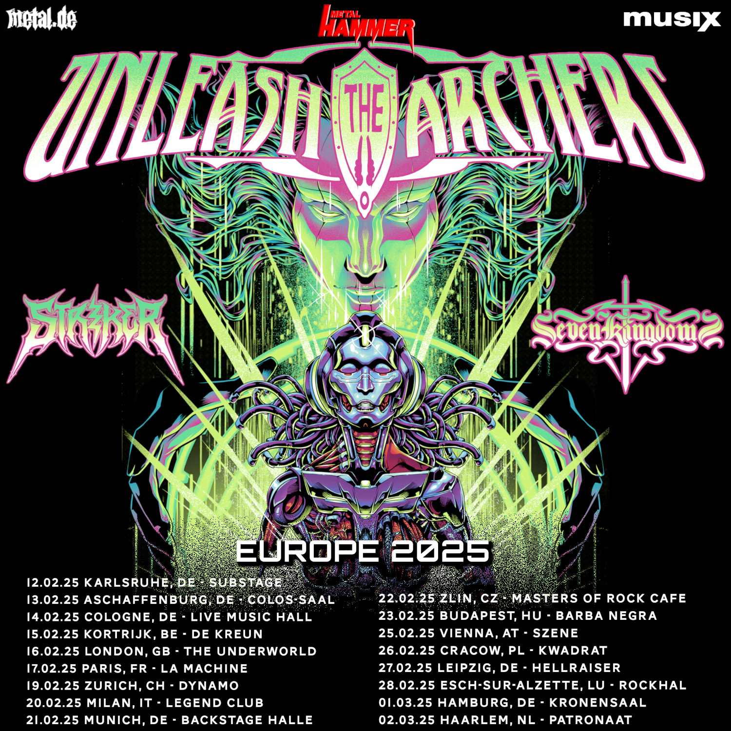 About: Blending classic heavy metal, hard rock, and ’80s hair metal, Striker has been making shredtacular anthems since 2007. The band has toured multiple times across Europe and North America, along with festival appearances at 70,000 Tons of Metal, Bang Your Head Festival (Germany), and mor,e to add to the almost 1000 shows performed in their decade-plus career. The band has been honoured with multiple Best Album awards in their home country of Canada from the JUNO Awards, Western Canadian Music Awards, and the Edmonton Music Awards. Since their inception, Striker has released seven studio albums Eyes in the Night (2010, Iron Kodex), Armed to The Teeth (2012, Napalm), City of Gold (2014, Napalm), Stand in the Fire (2016, Record Breaking), Striker (2017, Record Breaking), Play to Win (2018, Record Breaking), Ultrapower (2024, Record Breaking).