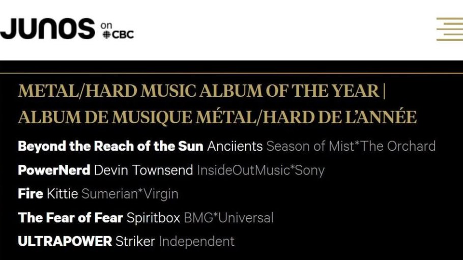 2025 – JUNO Awards – METAL/HARD MUSIC ALBUM OF THE YEAR / ALBUM DE MUSIQUE MÉTAL/HARD DE L’ANNÉE