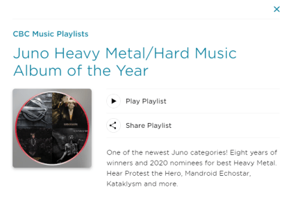 0 Check out CBC Music Playlist – The JUNO Awards Heavy Metal/Hard Music Album of the Year Featuring this year’s nominees (including Striker) and past winners!
