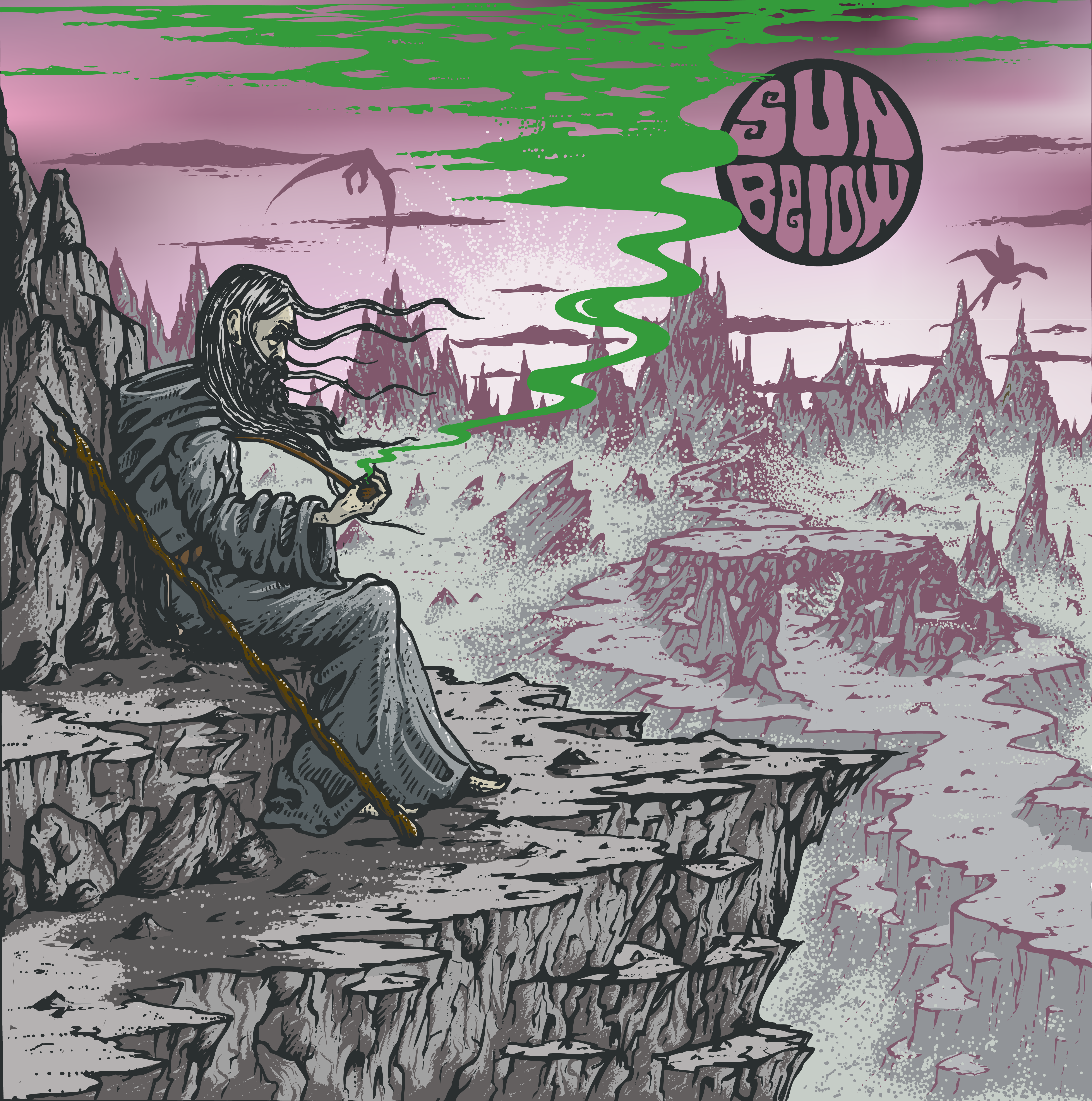 “We are beyond Sativa stoked to be releasing our self-titled debut LP after months of rehearsing, recording, and self-producing. We feel this album represents all the elements that embody our style; crushing doom, infectious grooves, big riffs, driving bass, earth-shattering drums, and experimental vocals. The album story contains a fully formed concept around the central figure of the record, the Holy Drifter. The goal is to transport the listener through various points in time in not only the Drifter’s life, but in the history of his mountain shrine atop the Chronwall, as he struggles to find the meaning in his erratic, herb induced visions. As he comes closer to reaching a point of discovery, the laws of time and space are bent to reveal an impending doom reaching across twin worlds. The album balances long burning, crushing doom with raw, up-tempo heavy rock and exploratory instrumental jams to present a vast sonic landscape.” – Sun Below