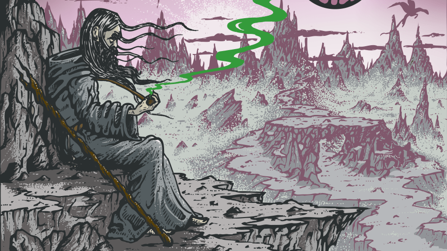 “By this part in the album’s story, the Drifter has grown fatigued with his lack of understanding of his visions and decides to scale the Chronwall to the peak of his mountain shrine. There, he commences a ritual that creates a rift in space-time, and through the newly created void looming above him, he encounters a future version of himself in the distant future. Through a telepathic link established between them, the Drifter learns that many years from now, the sun is threatening to imminently burn out in the future, and the future Drifter decides to impart this knowledge of impending doom, as well as an enhanced strain of the Sativa herb, to his younger counterpart. Musically, it is the most ambitious track on the record in length and in scope, as it combines groove with the crushing weight of impending doom as well as spaced out vocals which themselves seem to echo across time.”