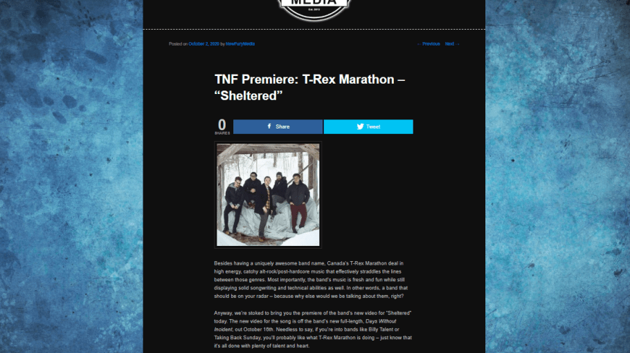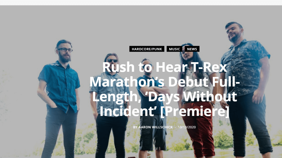 “Rising Ottawa-based band T-Rex Marathon will see a release of their first full-length album, Days Without Incident, this year with songs chock full of the bands’ signature mix of melodic punk rock post-hardcore.” – Ghost Cult Mag