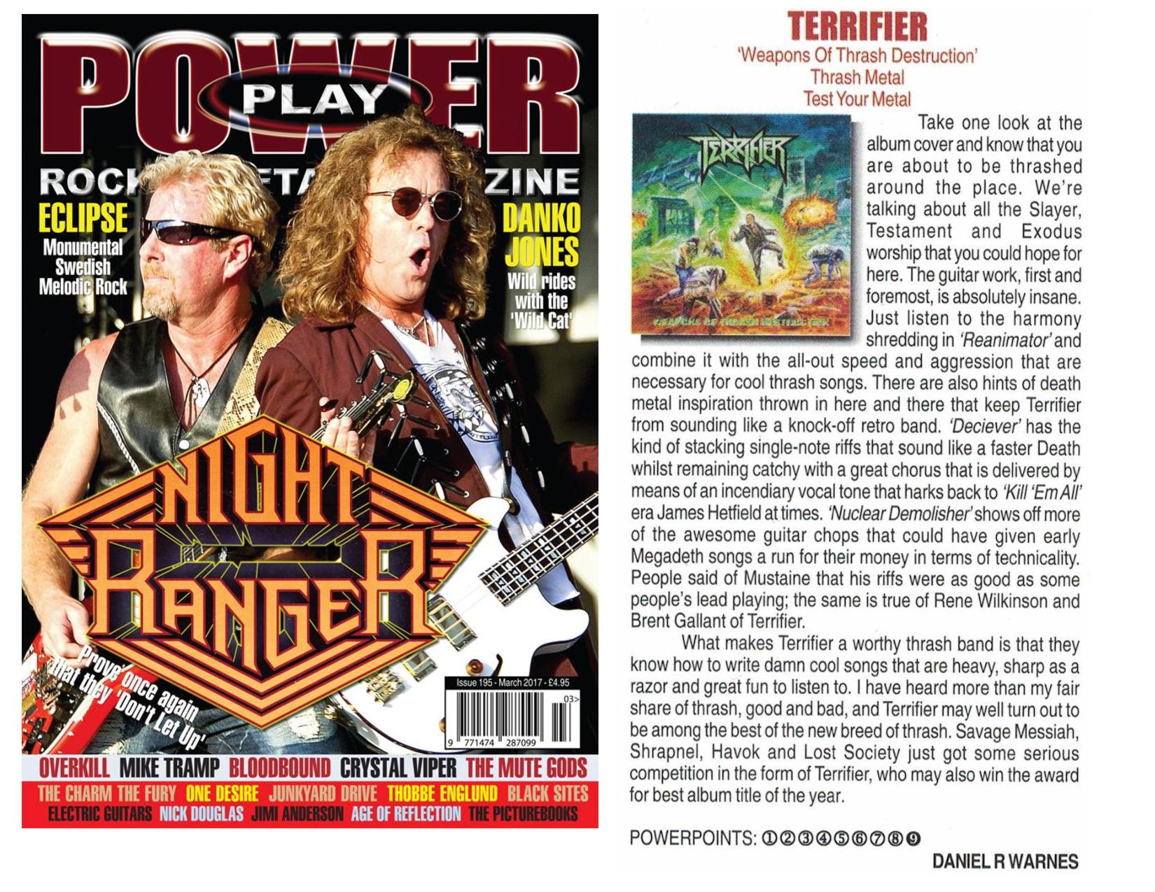 “The Canadian quintet Terrifier knows full well what its strengths are and it plays to them in spades on the wonderfully titled Weapons of Thrash Destruction…This is a fine thrash record. Should make for a fun concert, too.” – The Vancouver Sun