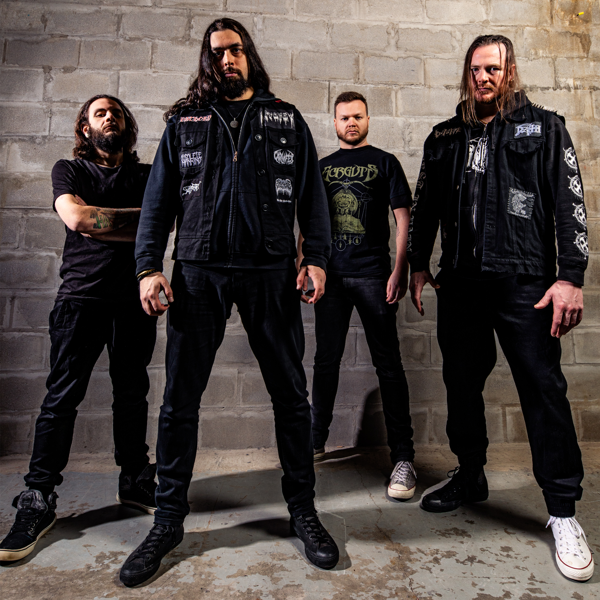 “We look forward to this album reaching the masses, from start to finish, we feel it will be a great listen. We put in a lot of effort to choose the track listing to feature an onslaught of both French and English songs. We feel it’s great importance to take influenced international English death metal and blend it with sung French Canadian death metal. We have French tracks like ‘La Valse du Scorpion’, ‘Disloqué’ and ‘Place du Parvis’ along with English assaults with ‘Genuflect’, ‘Elegy of Emptiness’, ‘Angry, Unleashed’ and ‘Angry, Undead‘. We feel they all meet the standards of tone and sound of international death metal songs. Plus them being produced, mixed and mastered at The Grid (Montreal, QC) by Chris Donaldson (Cryptopsy), a legend in Quebec and beyond, gave it that extra touch of death.”