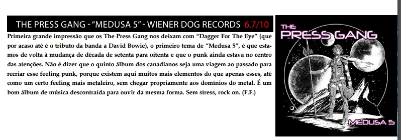 THE PRESS GANG recently released their fifth studio album ‘Medusa 5’ via their indie label Wiener Dogs. The ten track release showcases one of Calgary’s most talked about bands an…