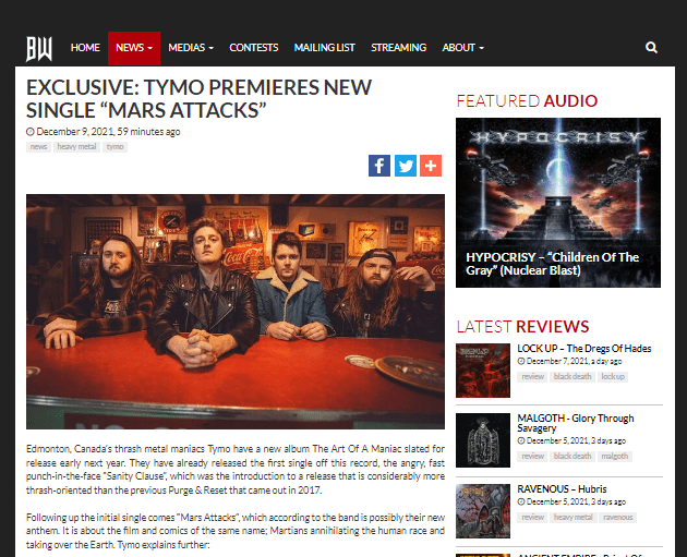 Tim Tymo describes the band’s sounds as “loud, angry, and explosive thrash”. Tymo has a serious mission to entertain their fans. “We love writing and performing, and we all share a common passion for thrash metal. We wanted to reference our heroes and mix up that inspiration with our own brew and see what we came up with, and here we are. We want to give people a source of inspiration and excitement!