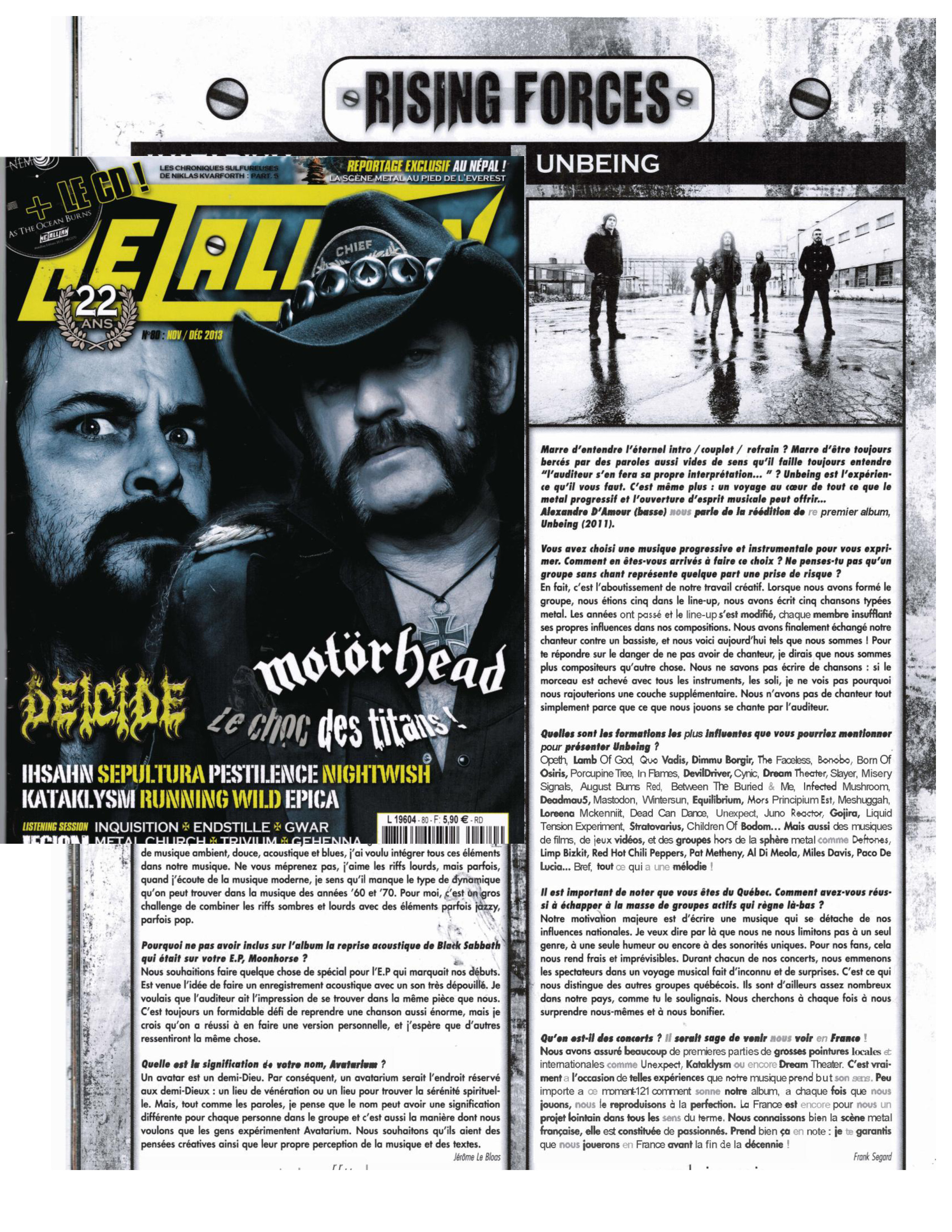 Steroid induced progressive metal band UNBEING have confirmed their upcoming performance at M for Montreal‘s “M for Metal” showcase in collaboration with the Heavy Metal Music Association of Canada (H.M.M.A.C.) on November 22nd atKatacombes.
