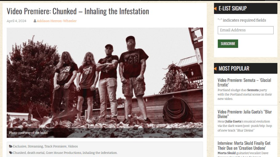 “The song’s (Disavowed) lyrics are eloquent but crushing — a narrative of broken men, hollowed out, filled with prolonged misery, and now “apathetic, hater of life, a mockery and in distress,” entertained only by the suffering of others, begging for death, and “awaiting the cleansing with blood / Adorned with nails and a crown of thorns.” As dark as the words are, the song is equally dark. From the beginning, harsh and heavy slashing chords and chant-like tones cast a grim cloud, backed by head-moving beats, and the searing intervention of the writhing lead guitar feverishly spreads despair. When gritty growls come in, the riffing spasms. When the voice transforms to rabid screams, the music slashes again but blazes in distress. The drums blast; the guitars swarm; the vocals wildly channel agony and rage; and quick jolts segment the violence. The darkness is unrelenting, but the song is also exhilarating, and it should appeal especially to fans of Deicide.” – No Clean Singing