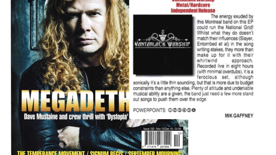 ” Vantablack Warship wear their influences for all to see, there is, thankfully, no doubt that they have a sound that is all their own, or at least a sound made their own. Opening track You’ll Burn brings to mind Entombed’s 1993 classic Wolverine Blues, – as do all six tracks, in fact – but never to the point of plagiarism, and although Cancer Bats, Pantera and Slayer are all obvious influences too, there is no sense that you’re hearing a poor imitation, just a kick ass band with great taste in music.” – Morat 666