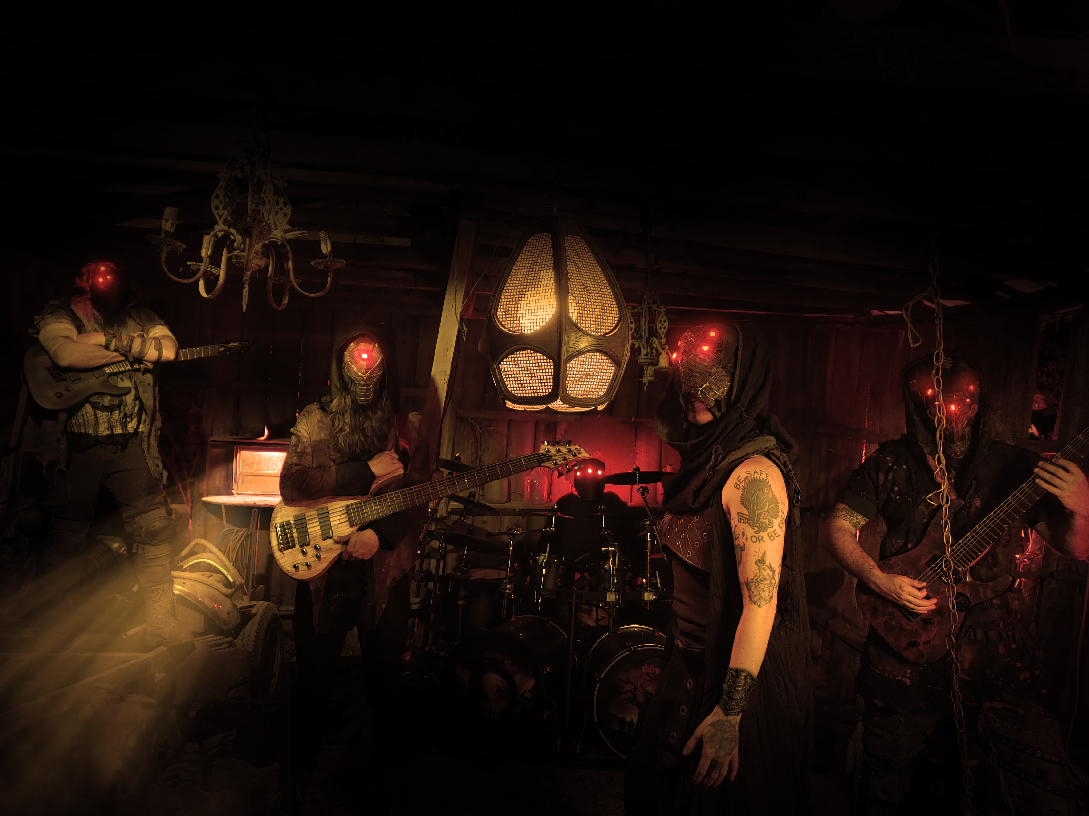 2 – Our outfits are handcrafted by the wife of our guitarist (Frank Kohl). The armor and cuirass that our vocalist wears was hand crafted by leather crafter/armorer Joshua Niemeyer who is the owner of the crafting company “The Grim Ringer.” Our masks are altered mesh masks crafted by Tylor Kohl and Joshua Ward.