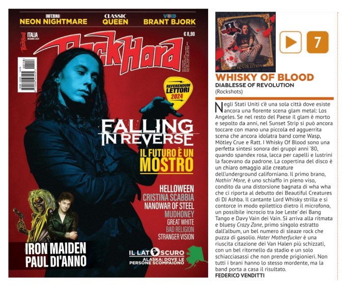 Whisky Of Blood is a band born from the desire to return to the roots of 80s rock, describing their sound as rock’n’roll, full of melodies, powerful, and funny. Today, they announce the release of the first single called “Crazy Zone” off their next album “Diablesse of Revolution” featuring guests Chris Holmes (Ex-W.A.S.P., Mean Man) and Steff Rabilloud (Rising Steel, Urgent) to be released via Rockshots Records on September 27th, 2024.